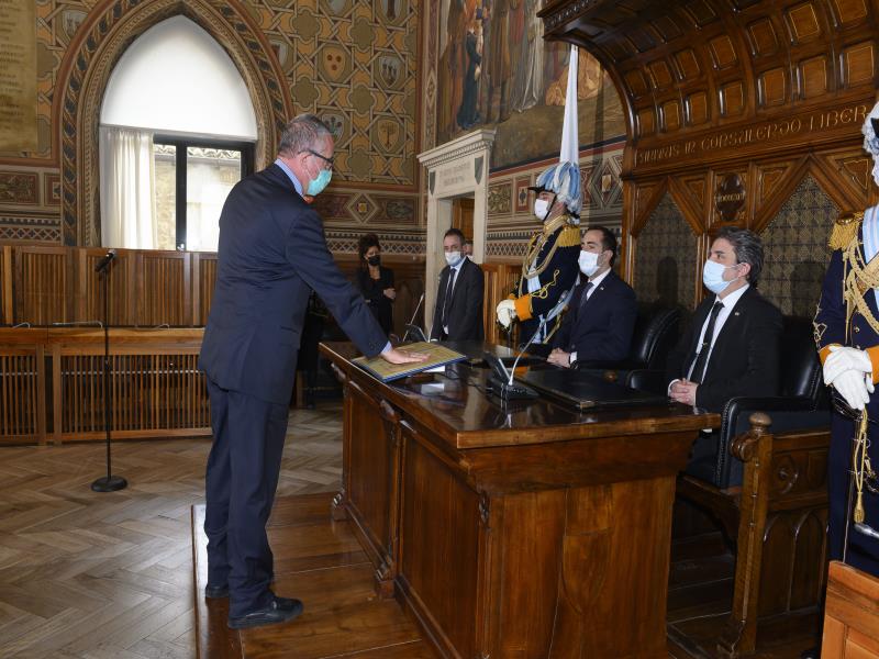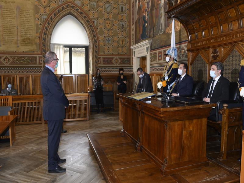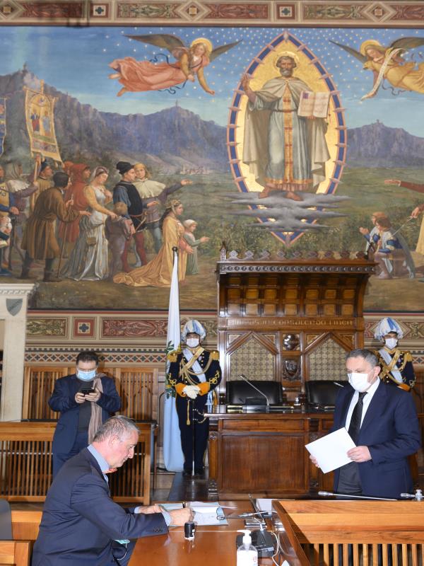 Le consul est nommé par les chefs de l’État sur proposition du Secrétaire d’Etat aux Affaires étrangères et approbation de l’Assemblée Nationale. Il doit prêter serment sur les Saintes Écritures devant les deux Capitaines Régents, chefs d’Etat bicéphales de la République de Saint-Marin.