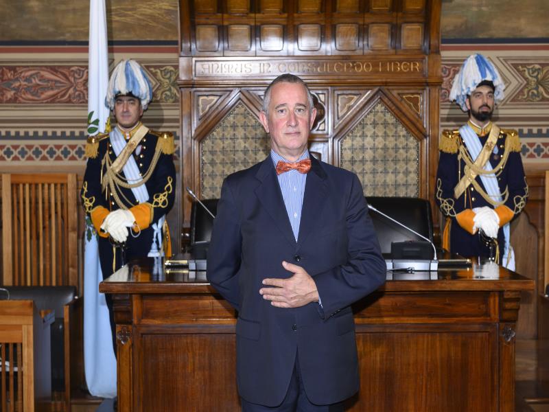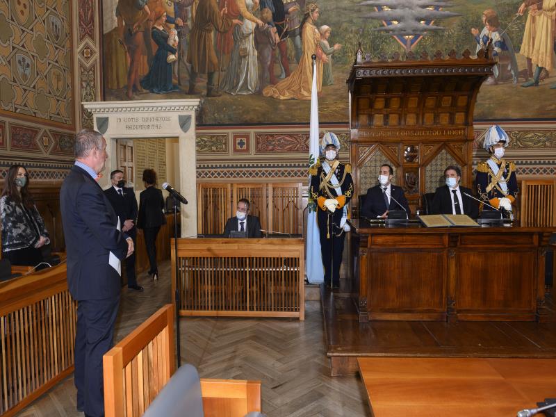 Marcello della Corte, premier consul de Saint-Marin au Congo, présentant quelques symboles de sa charge.