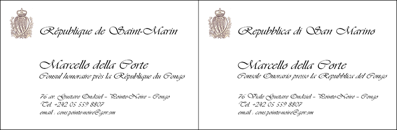 Le Conseiller technique et commercial de Green Services, Marcello della Corte, s’est rendu début février à Saint-Marin pour y recevoir la charge de consul honoraire de la République de Saint-Marin au Congo avec siège à Pointe-Noire. Il y a prêté serment.